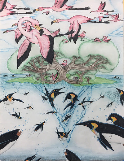 The second part of my self portrait. The lamb alongside the mage is sort of a stand-in for my lifelong stuffed animal companion, Lambie Pie. The writing in her book is Irken text. Anyone who's a fan of Invader Zim will probably recognize the Invaders' insignia instantly. This image is meant to represent intelligence and creativity. It's also a testament to my wild imagination that refuses to be tamed even to this day.